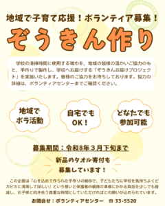 ボランティアセンターより雑巾作りにご協力いただけるボランティア募集のお知らせ